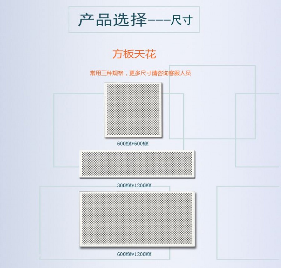 介紹:鋁天花、方板天花、微孔天花、鋼板天花、工程天花,嵌入式暗架系統和放置式明架系統,易拆卸,防塵隔音,崇佑品牌,行業知名品牌。