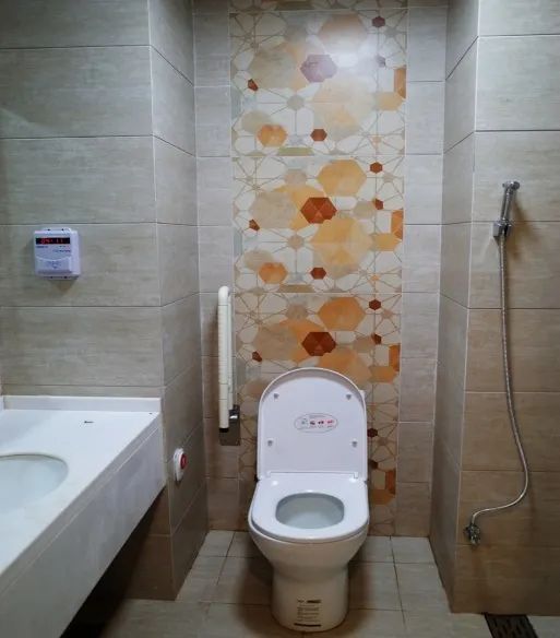 病區(qū)衛(wèi)生間采用干濕分區(qū),為了產(chǎn)婦、兒童的安全,淋浴間地面采用拉槽防滑處理,坐便器旁安置緊急呼叫按鈕。除此之外,還設(shè)置污洗龍頭,做到潔、污分開。真正將人性化設(shè)計落到實處。