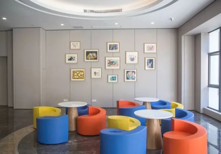 產(chǎn)科病房和兒科病房的墻面一改以往單調(diào)的色調(diào),以紅、綠、藍(lán)、黃等色彩使室內(nèi)空間五彩斑斕,兒科病房的墻面印刷上了許多的卡通圖案,使之既色彩豐富,又迎合了產(chǎn)科溫馨、兒科活潑的要求。