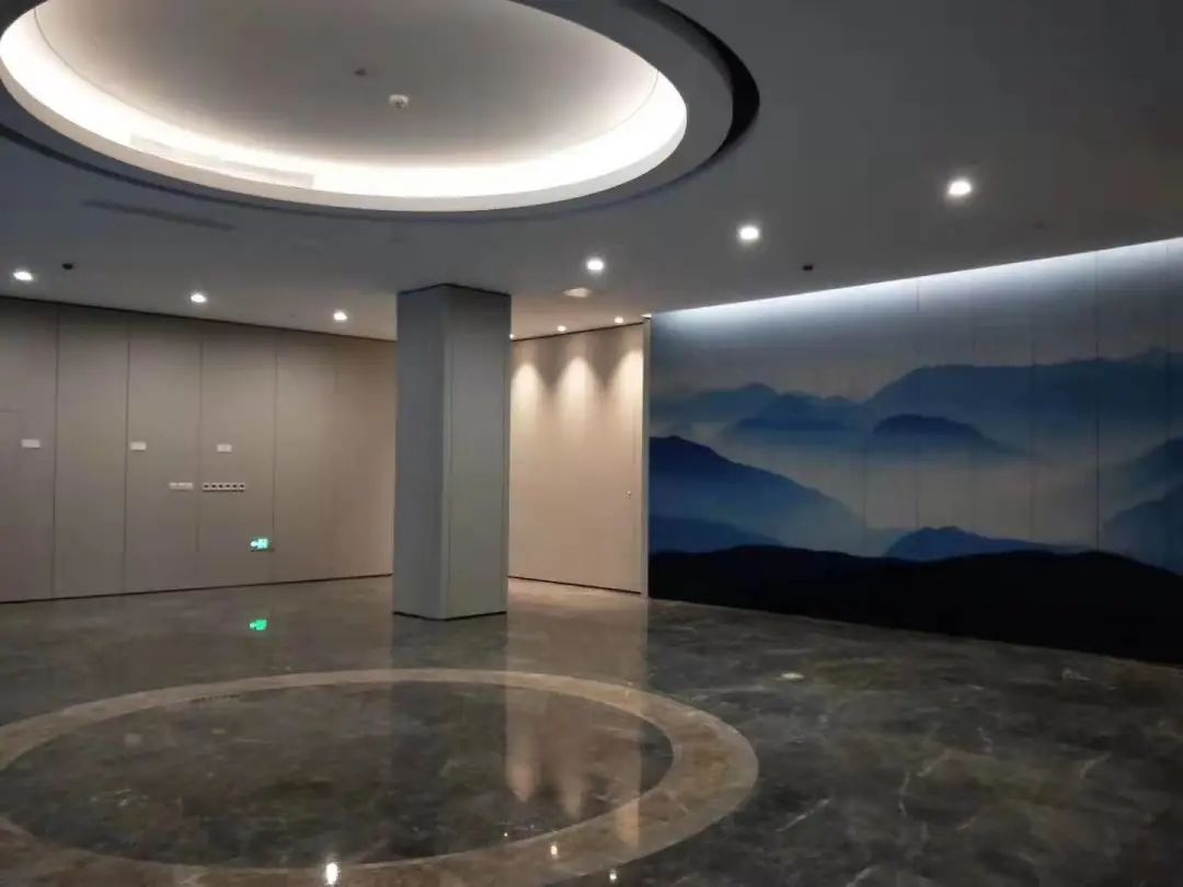大樓主入口設(shè)置了鋁合金除泥墊,保持室內(nèi)空間的癥結(jié),更具人性化。主入口的背景采用了以“星空下,山水間”為主題的造型墻,把設(shè)計概念落實到實處。大廳等候區(qū)采用多元化的家具組合形式,讓空間更加生動。
