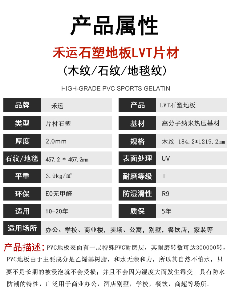 • LVT石塑地板 pvc片材地膠